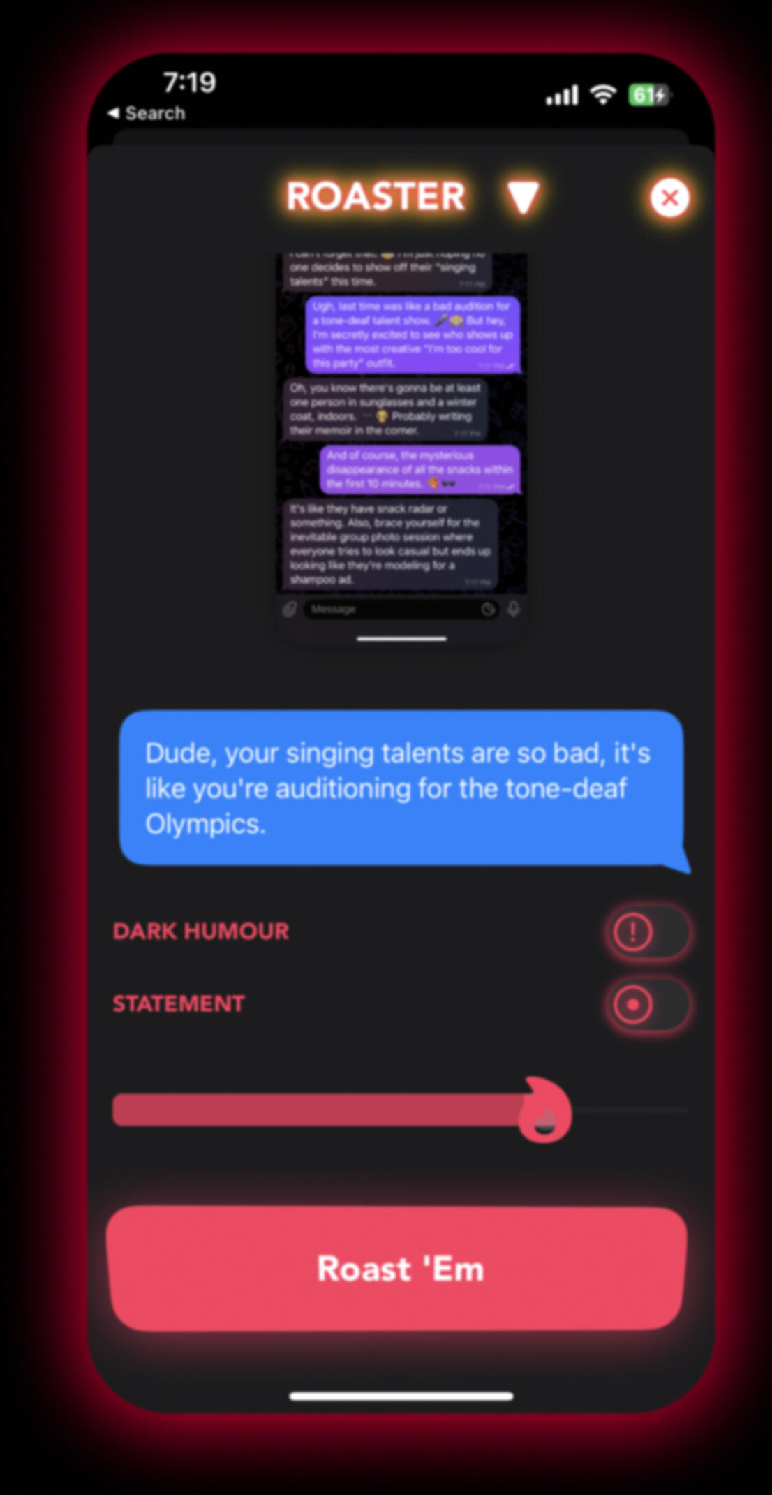 Think you're the roast master? You're not even on the leaderboard till you're slinging burns with Roaster Genius 24/7. Get on fleek or get schooled!